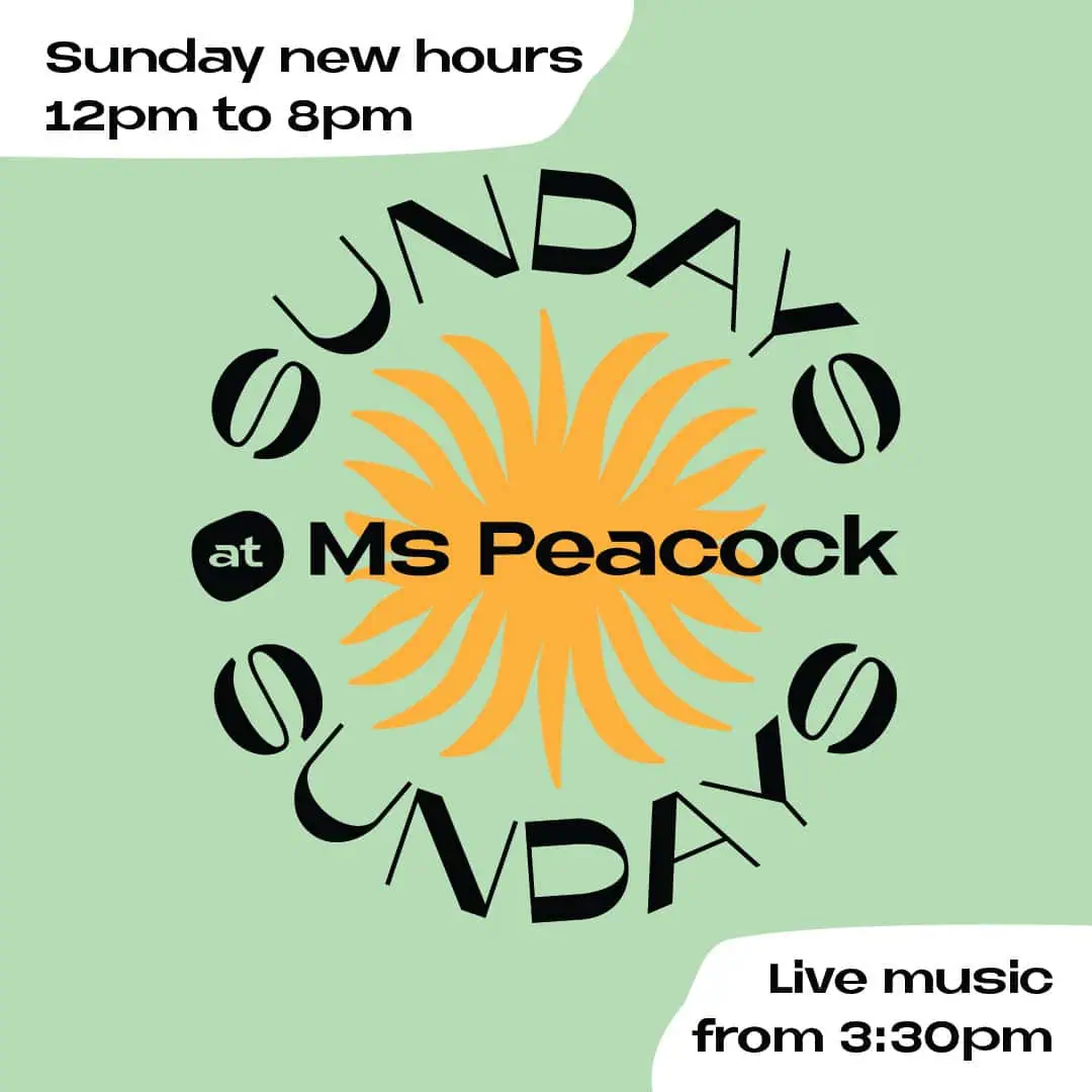 From Sunday 19th October, Sunday Sessions return to Ms Peacock! Join us any time from 12pm – 8pm for great food and drinks, and enjoy live solo artists performing from 3:30pm – 6:30pm.